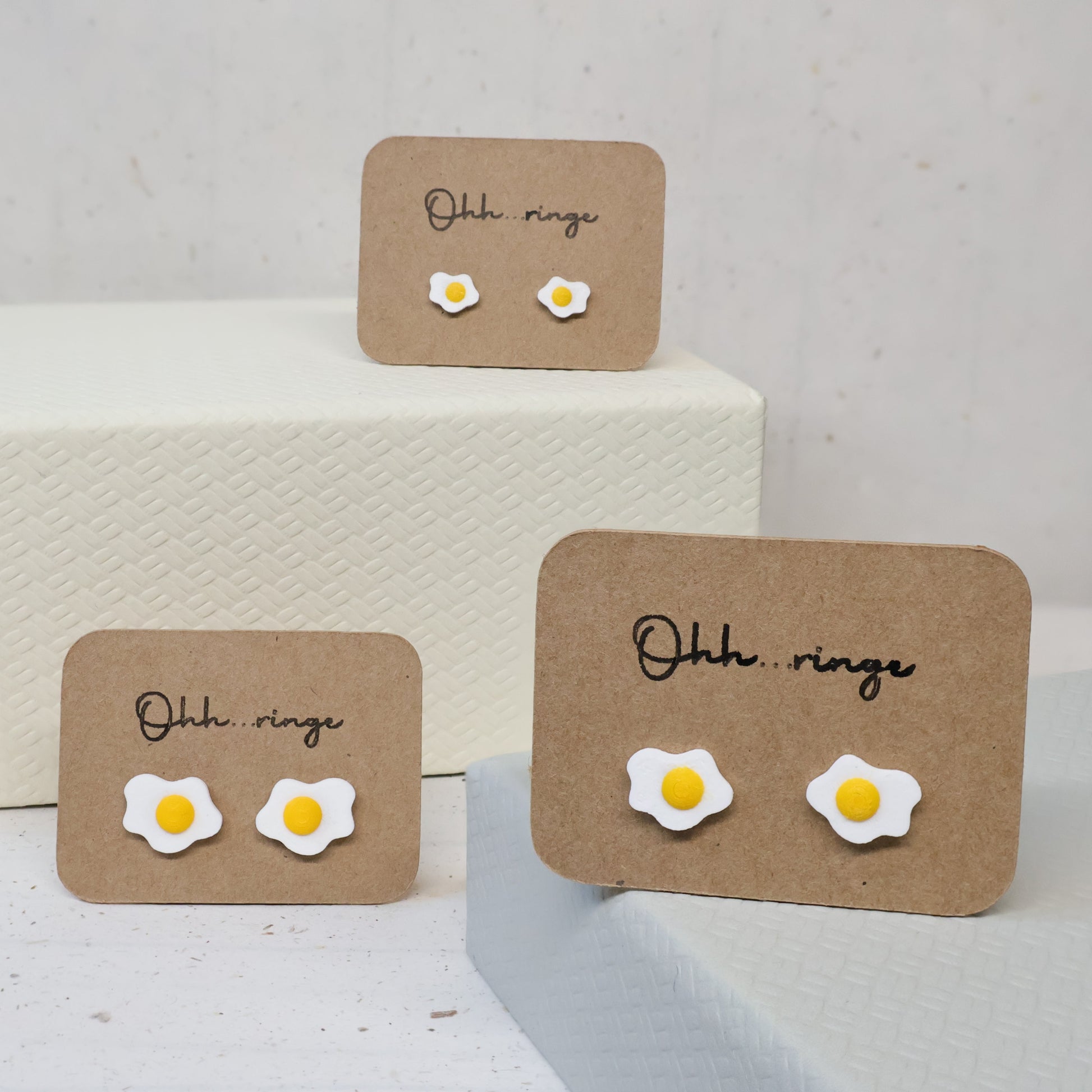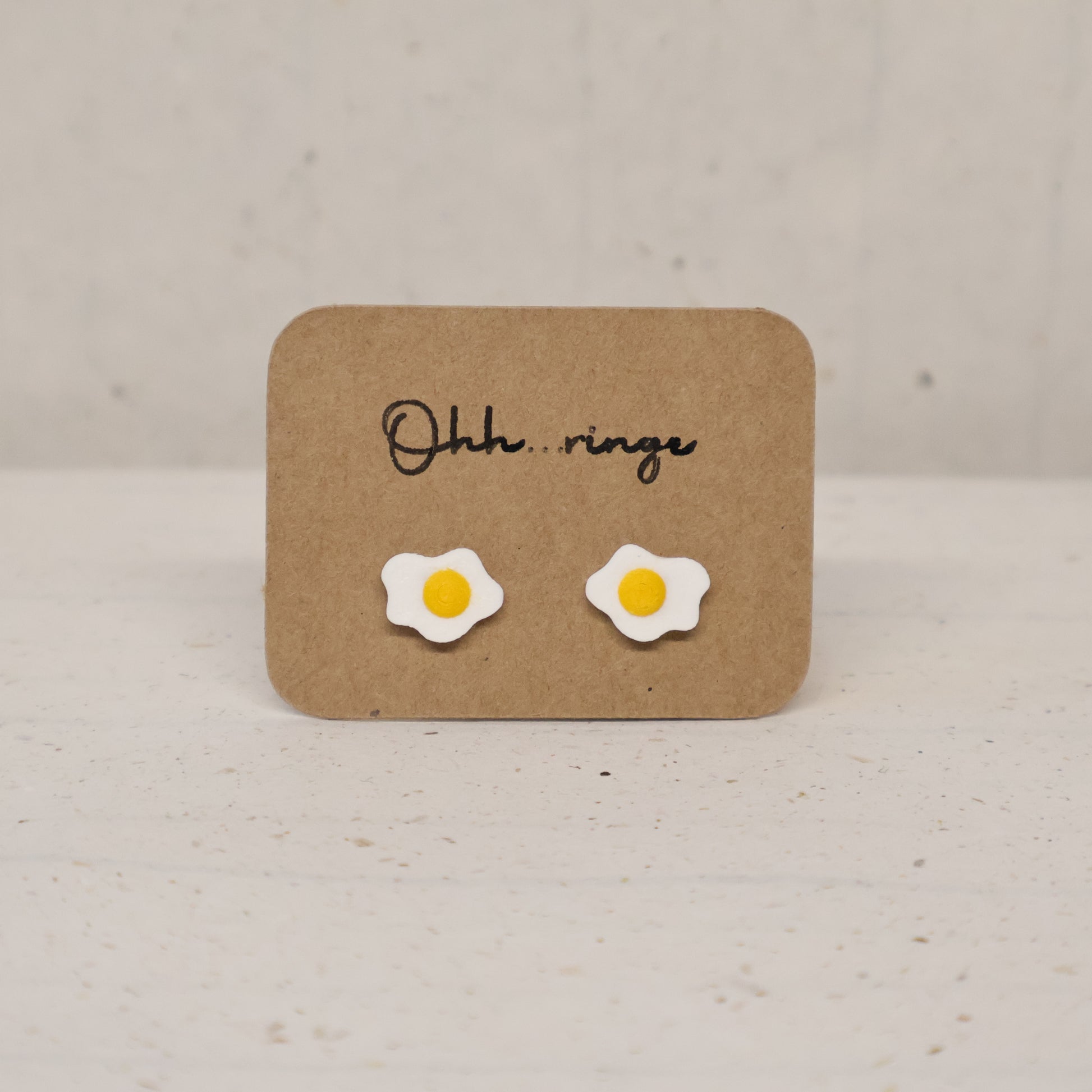 Pendientes impresos en 3D con filamento biodegradable (PLA), perno de plástico y cierre de silicona.