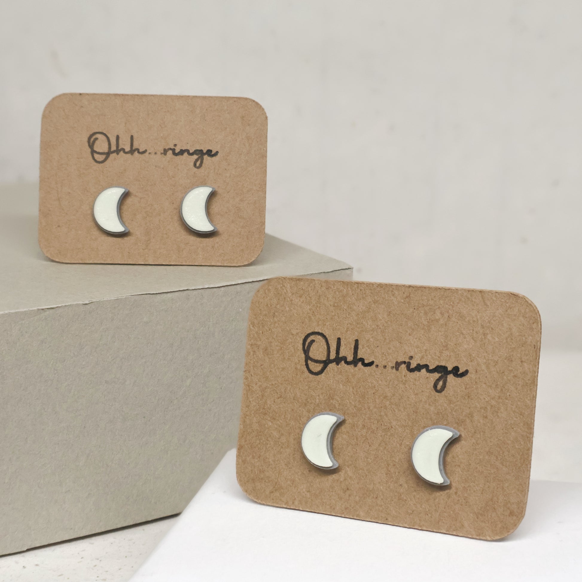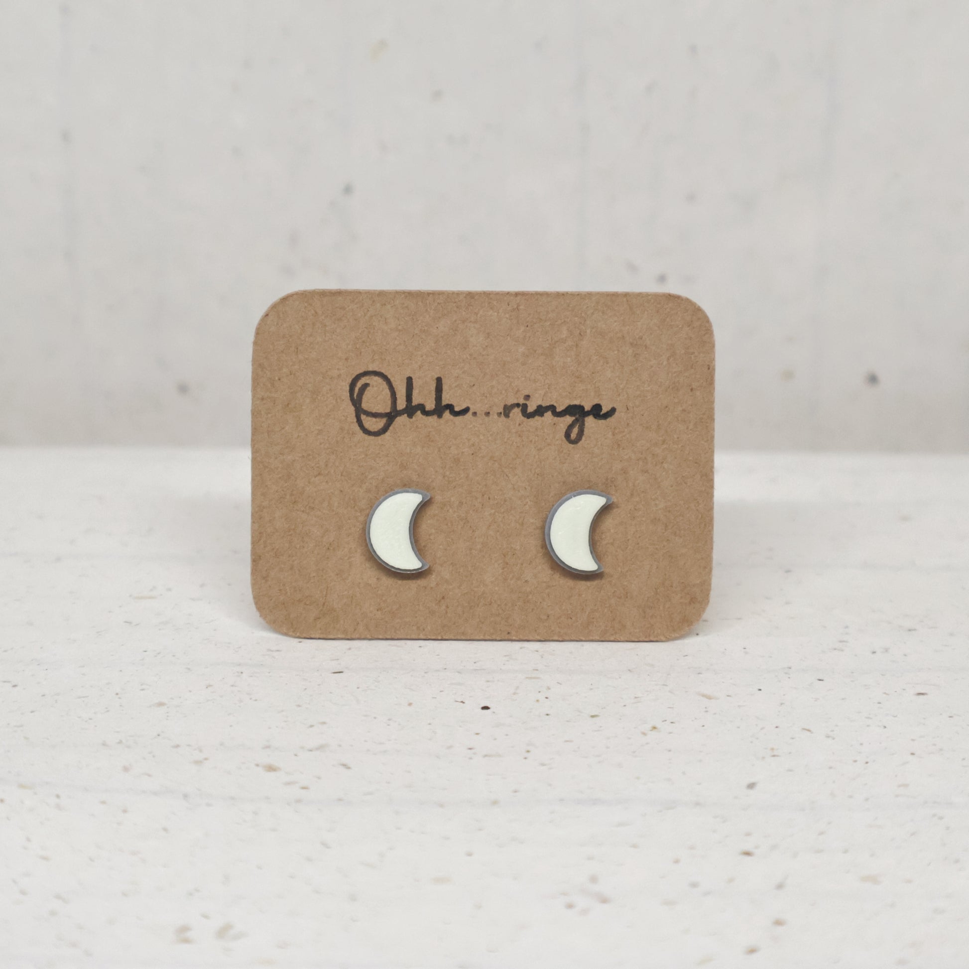 Pendientes impresos en 3D con filamento biodegradable (PLA), perno de plástico y cierre de silicona.