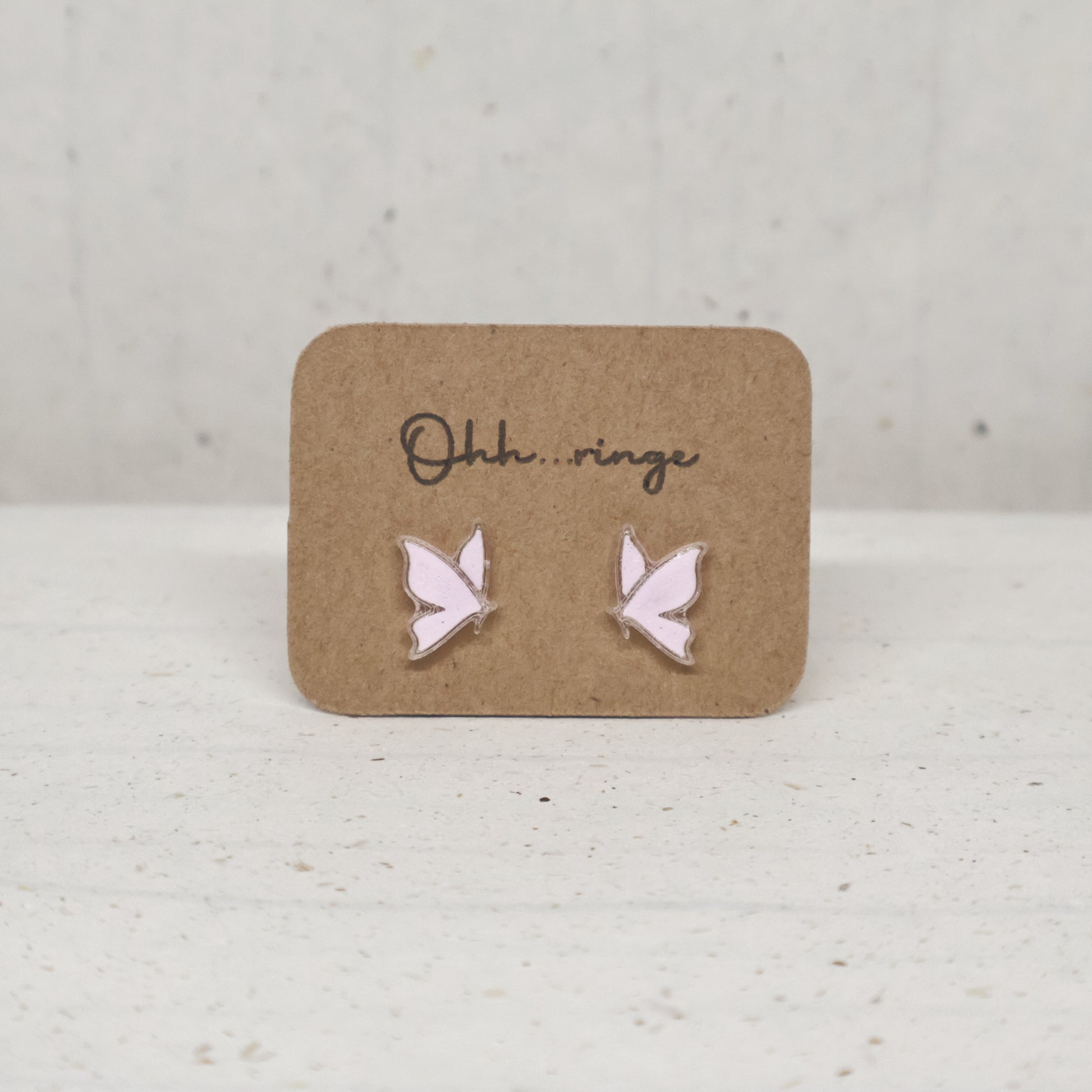 Pendientes impresos en 3D con filamento biodegradable (PLA), perno de plástico y cierre de silicona.