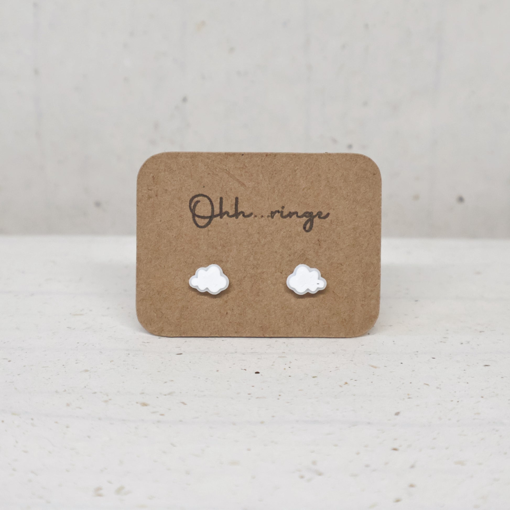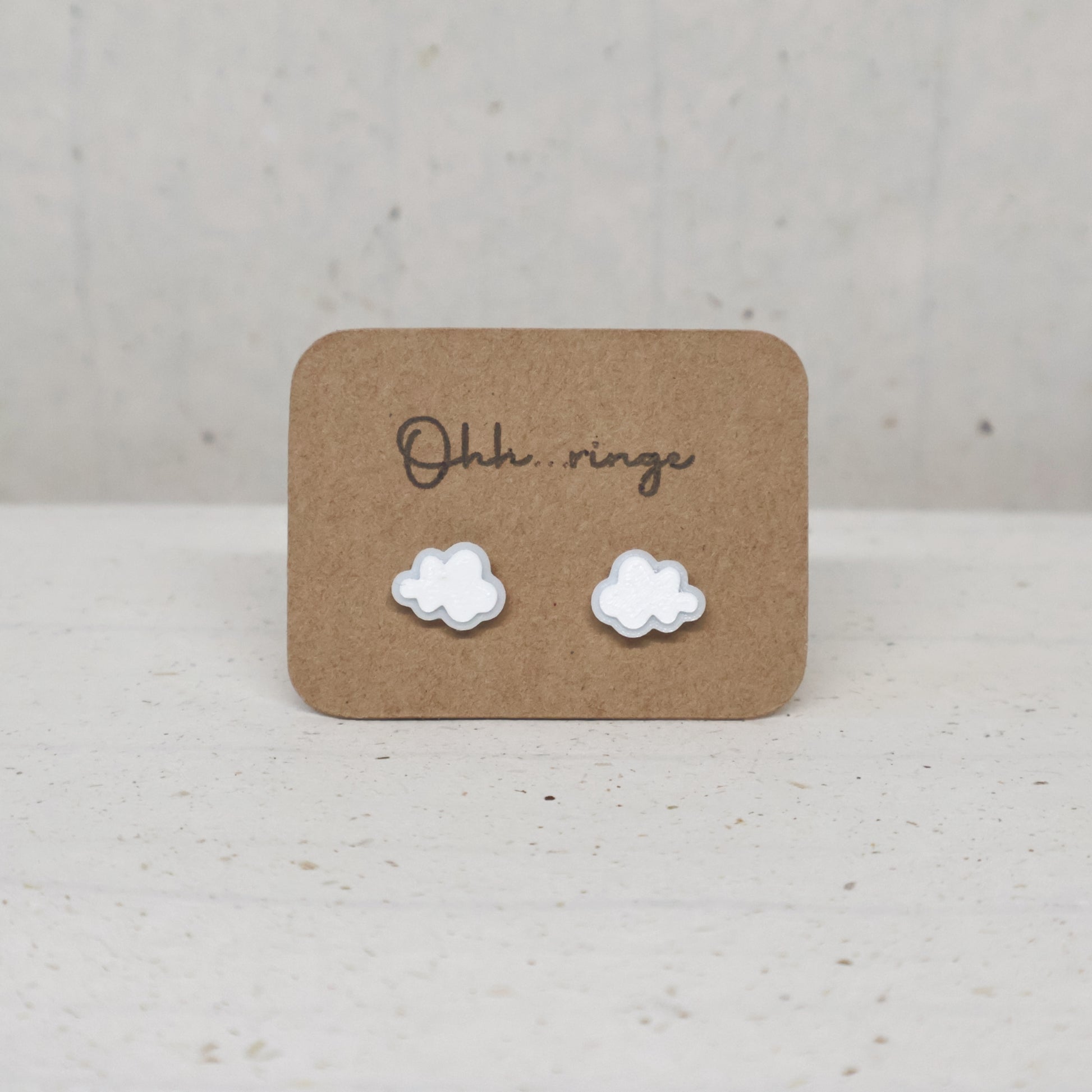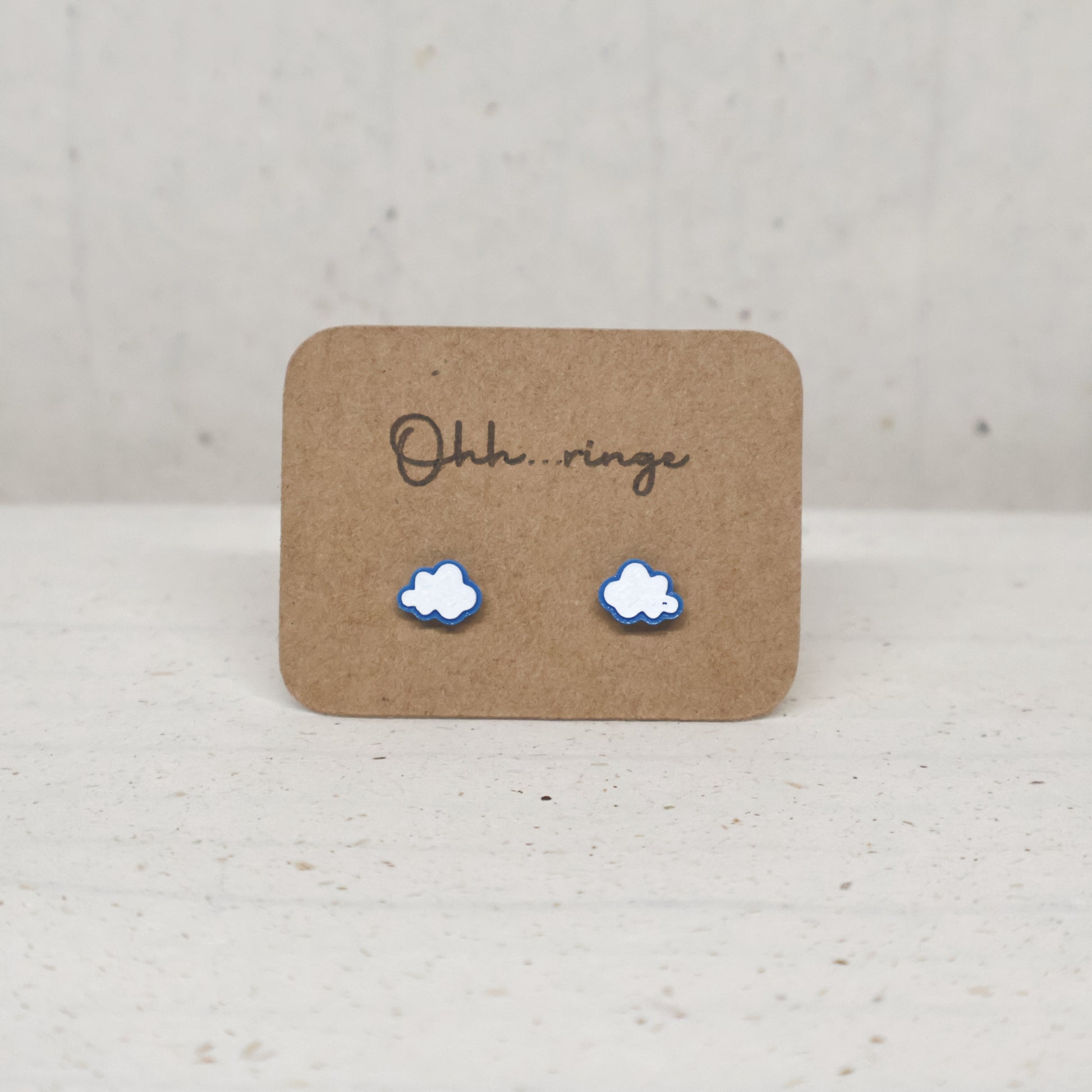 Pendientes impresos en 3D con filamento biodegradable (PLA), perno de plástico y cierre de silicona.