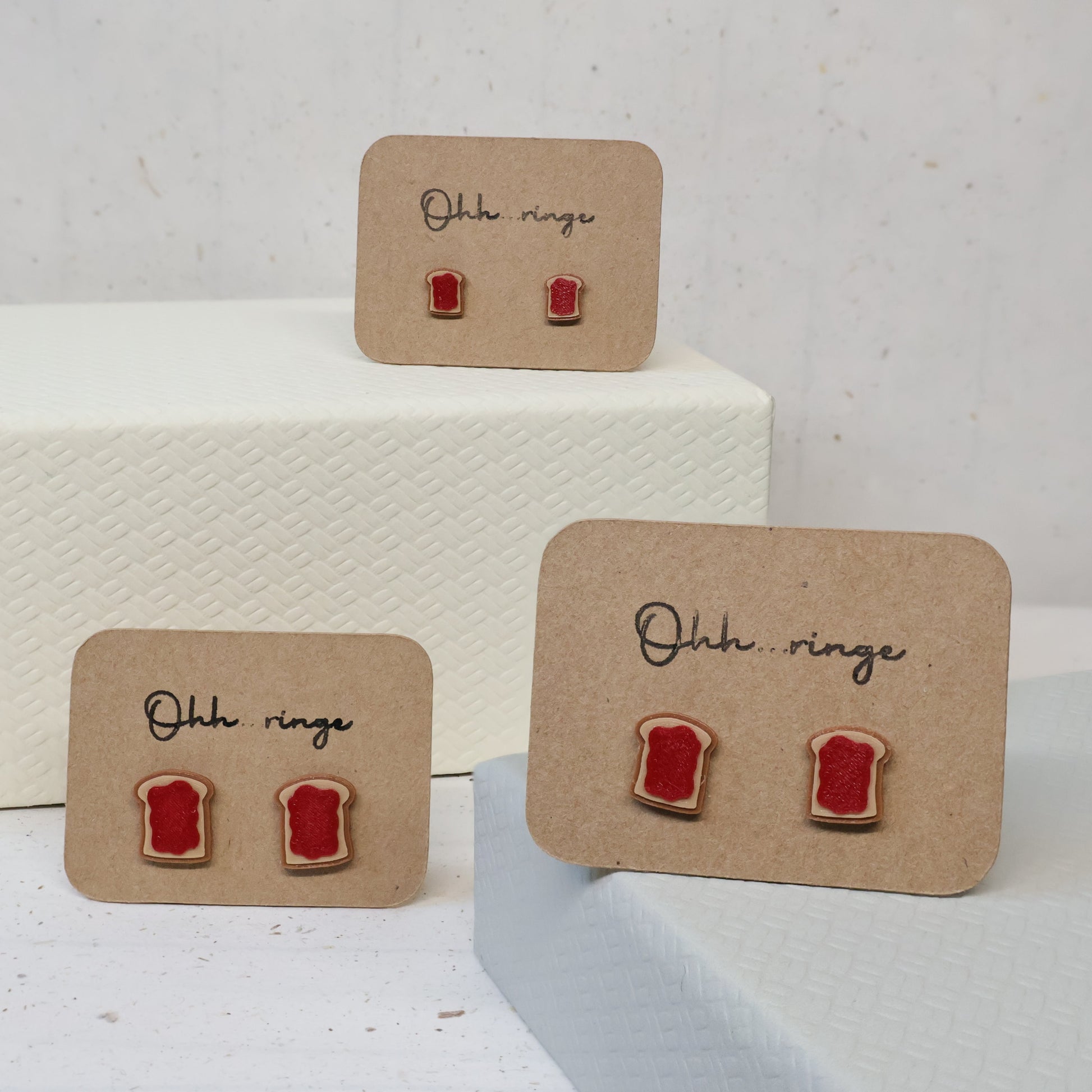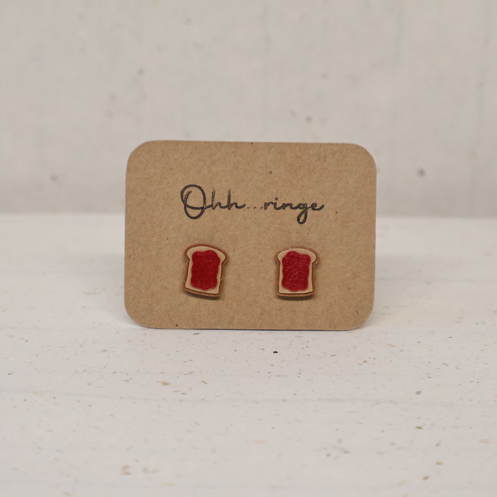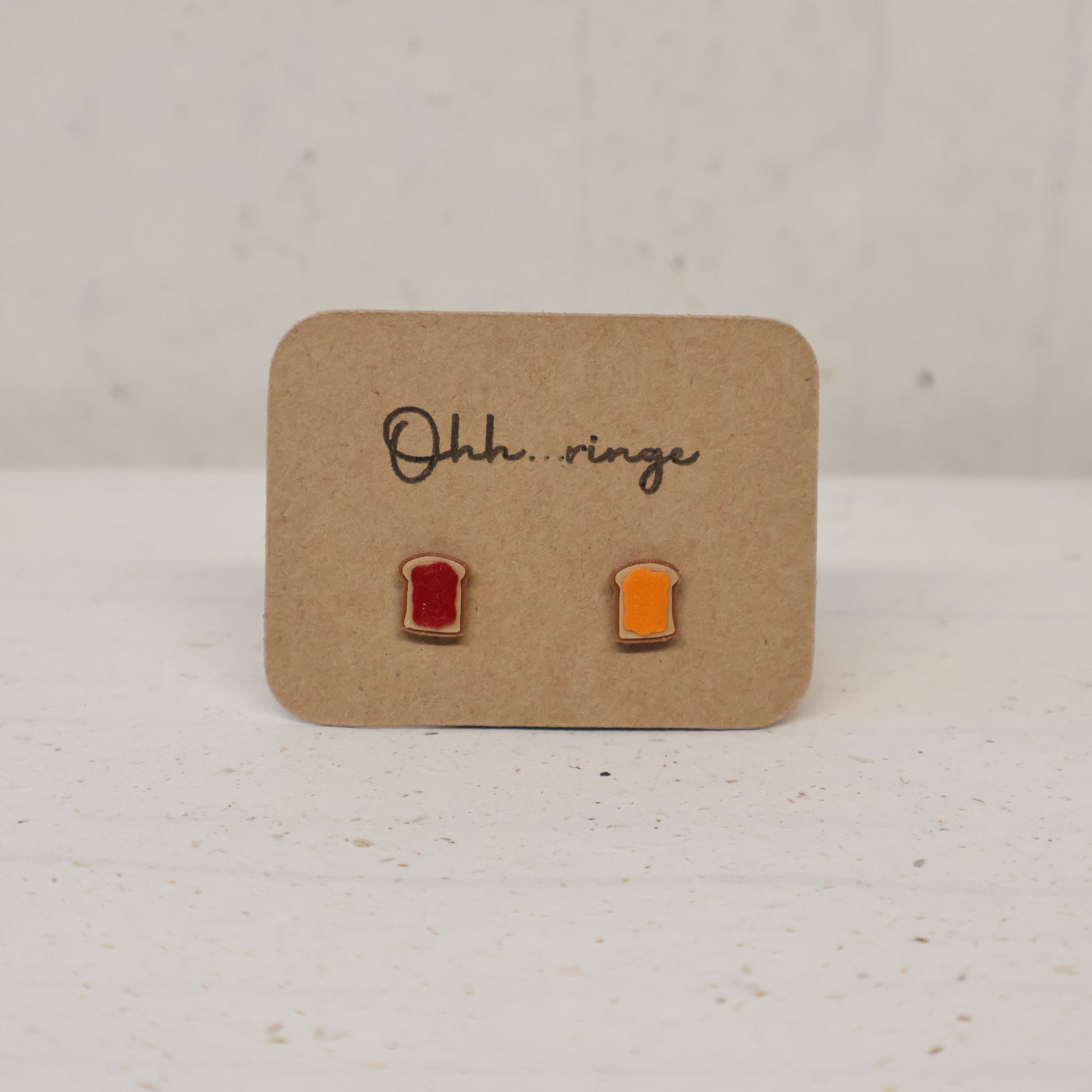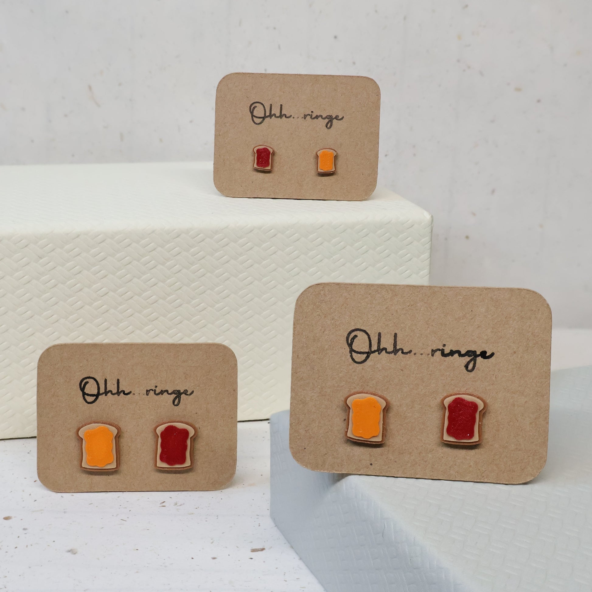 Pendientes impresos en 3D con filamento biodegradable (PLA), perno de plástico y cierre de silicona.